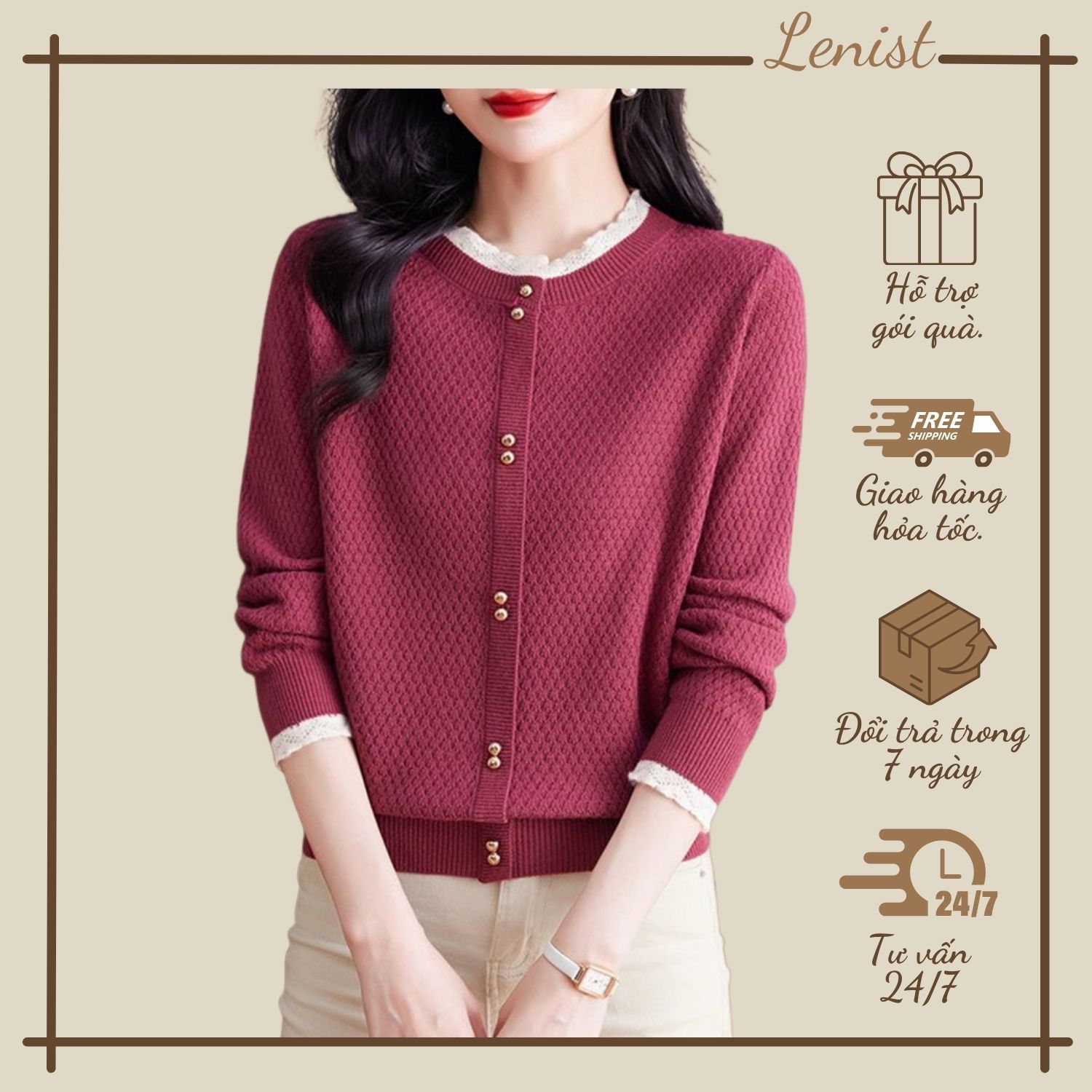 - Mô tả :Áo len dệt kim hai mảnh viền ren cao cấp mang phong cách thanh lịch và tinh tế. Thiết kế hai lớp phối viền ren mềm mại, tạo điểm nhấn sang trọng và nữ tính. Chất liệu dệt kim cao cấp co giãn, giữ ấm tốt mà vẫn thoáng khí. Phù hợp mặc thường ngày hoặc đi làm, dễ phối với chân váy hay quần âu để tôn dáng nhẹ nhàng.
