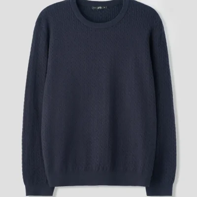 Áo Len Nam Regular Cổ Tròn Thấp Bện Thừng